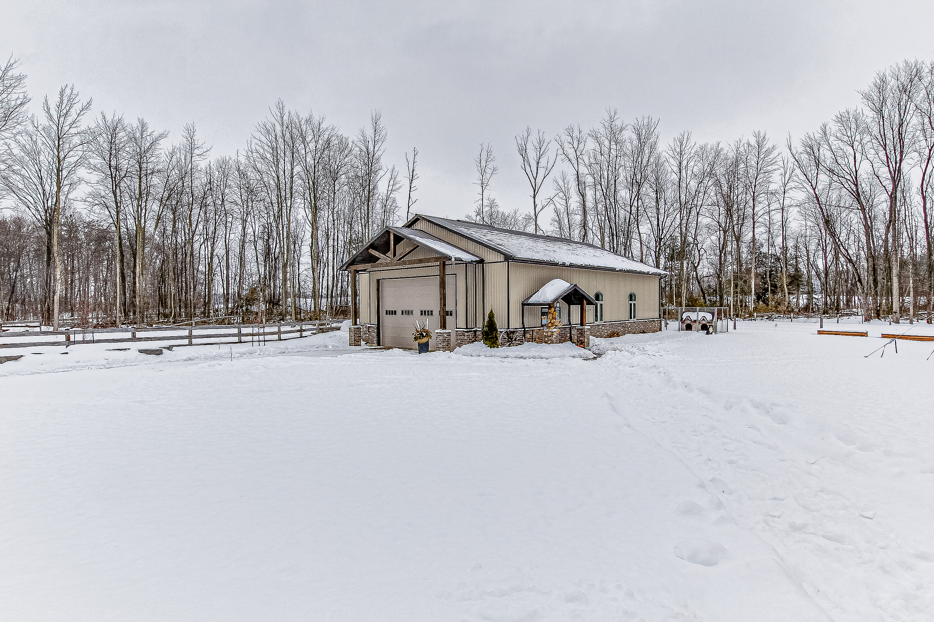Looking for 27 acres woodlot, only minutes to the 401/403 corridor, new home, and large shop? This is it! This home is only 7 years old, with main floor living, lots of windows overlooking the peaceful setting of the lawn and woods without any neighbors in view! The home has a 2 car garage, two bedrooms on the main floor with two bathrooms, a large kitchen with an island, open foyer which also leads to the finished rec room in the basement. There are two more bedrooms ready to finish in the basement with a rough-in for another bathroom. the furnace is a propane/wood hybrid, and very efficient. With an acre of pasture, the creek in the back yard edged with stones, open lawn space, and your very own woodlot, this is a rare find.
