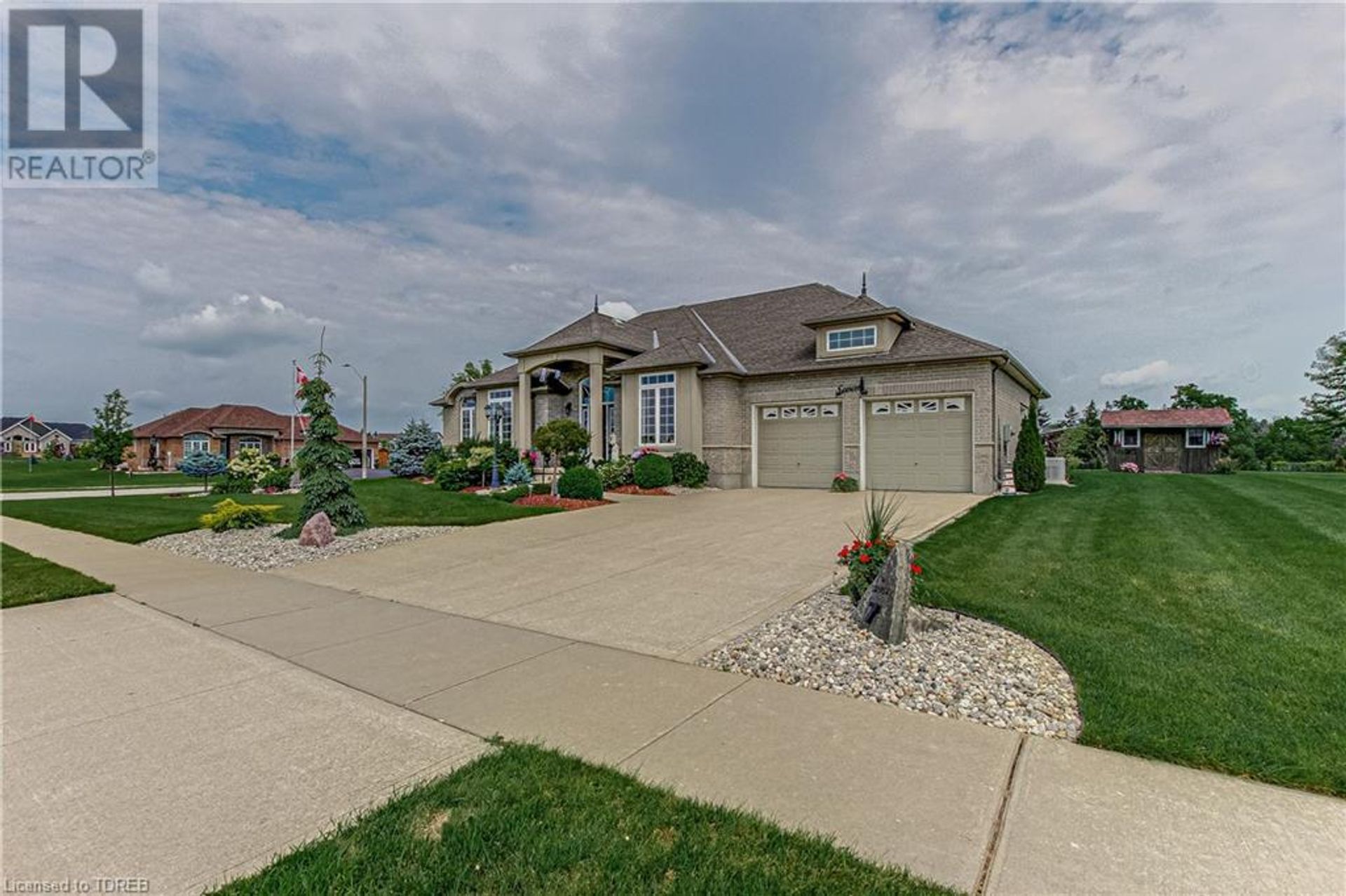 Built in 2008, this brick and stucco bungalow on a massive lot and backing onto open fields in a great place to settle down. Located just minutes south of the 401/403 corridor, on a quiet cul-de-sac, this home with three garage doors, stand by 22 kw Generac generator, covered porch, concrete patio, wonderful landscaping and a large shed in the back yard. The main floor has lots of living space with coffered ceilings, arched openings, open stairwell to the basement, and main floor laundry. The basement is partially finished with a rec room, storage area, and a huge open area for future bedrooms and bathroom. Looking for country living without being in the middle of nowhere? This is certainly one to come and see. (id:14735)