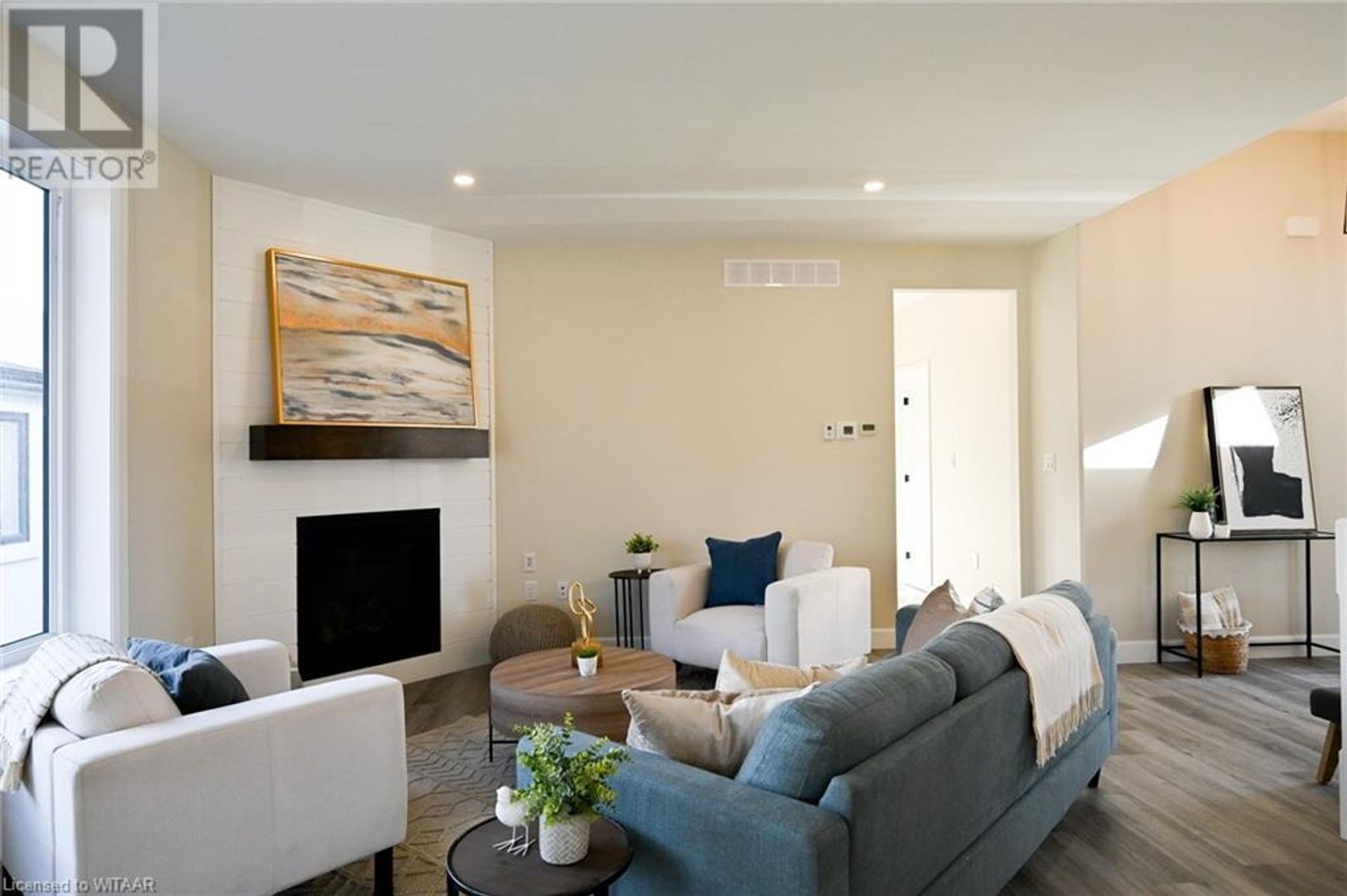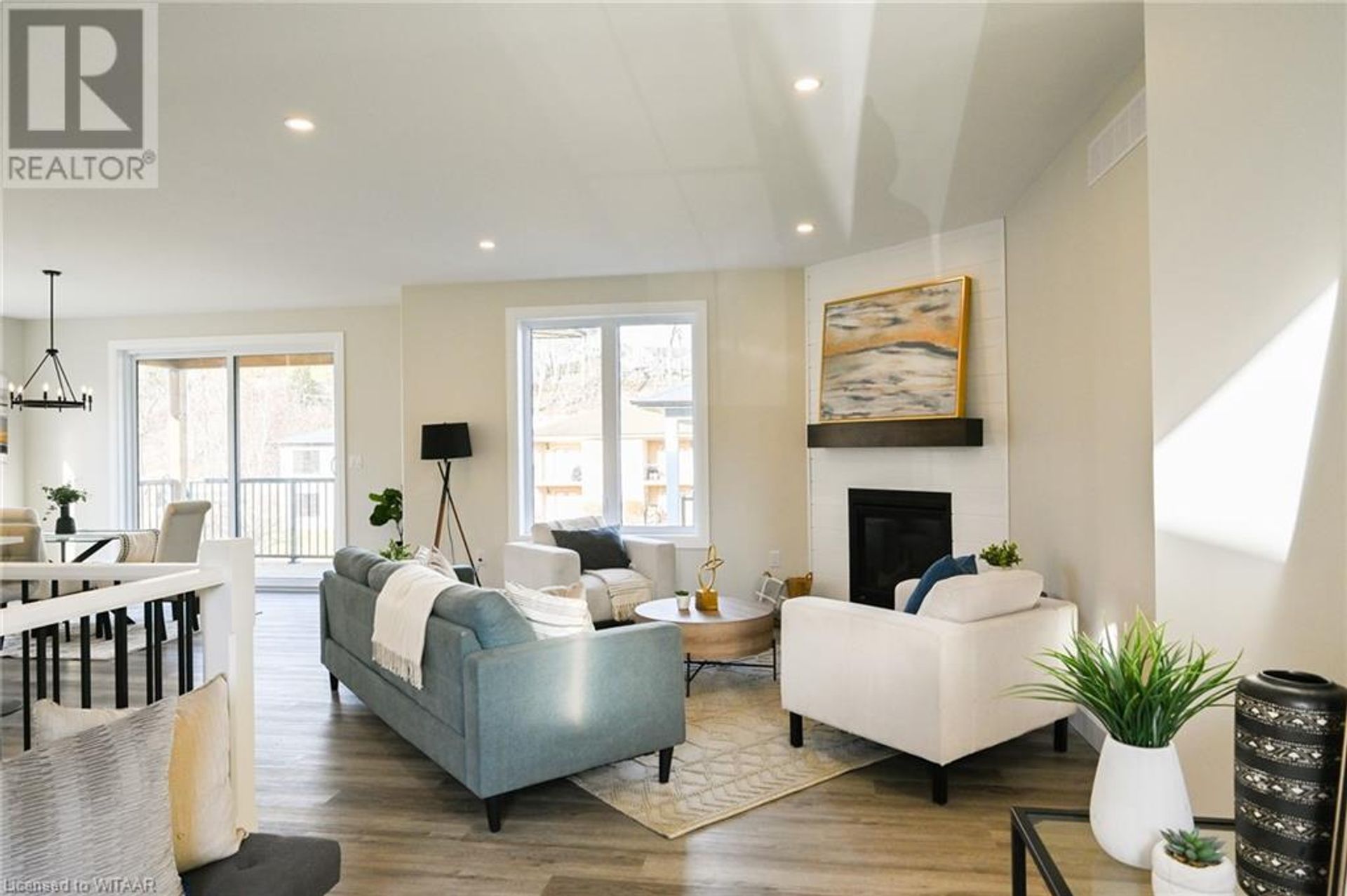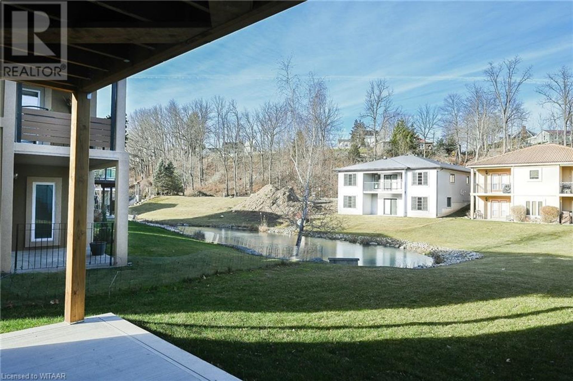 Welcome to modern, quiet living located at the Mill Pond Estates in Tillsonburg. This eye catching 2,808sq ft home backs onto a serene pond. The aesthetically appealing exterior features double car garage with a separate entrance, white stucco with black accents and wooden beams. Walking in through the front foyer with tray ceilings, you are greeted with a modern, open concept design and contemporary finishes that shows very well. The living room features a corner unit gas fireplace that flows perfectly into the dining area with lots of room to entertain, leading to the back covered porch, overlooking the pond. The custom built wood kitchen has plenty of cabinetry, eye catching backsplash and granite counter tops. The main floor offers a large primary bedroom with a walk-in closet and 3 piece ensuite with walk-in shower, finished in cultured marble. Additional bedroom, full 4 piece bathroom, closet laundry, good sized mudroom area with large coat closet complete the main floor. The fully finished basement boasts a large rec room with sliding patio doors leading to a concrete covered patio overlooking the pond. Two good sized bedrooms, 4 piece bathroom and large utility/storage room complete the basement. This move in ready home, is awaiting your personal touches! (id:14735)