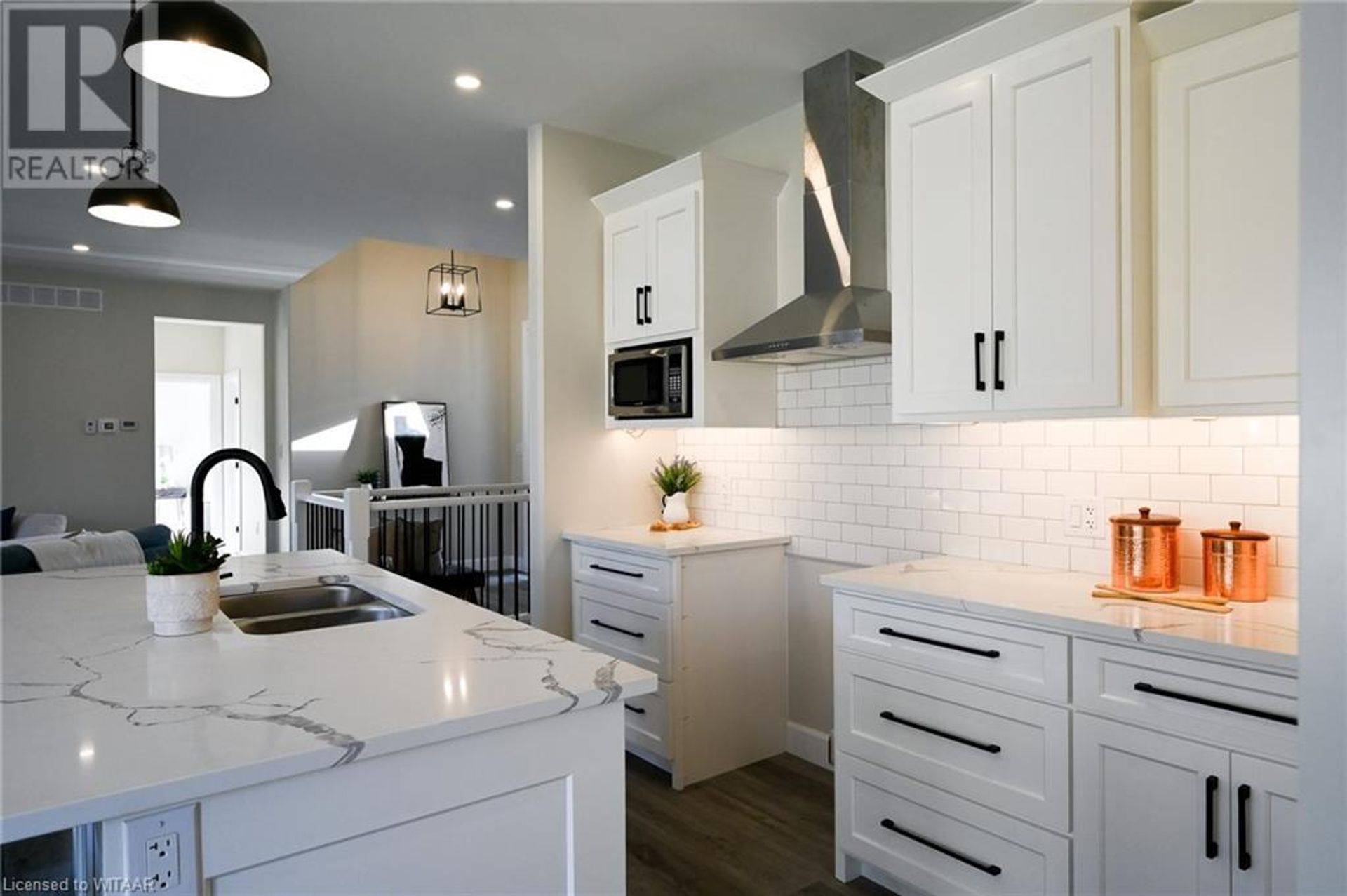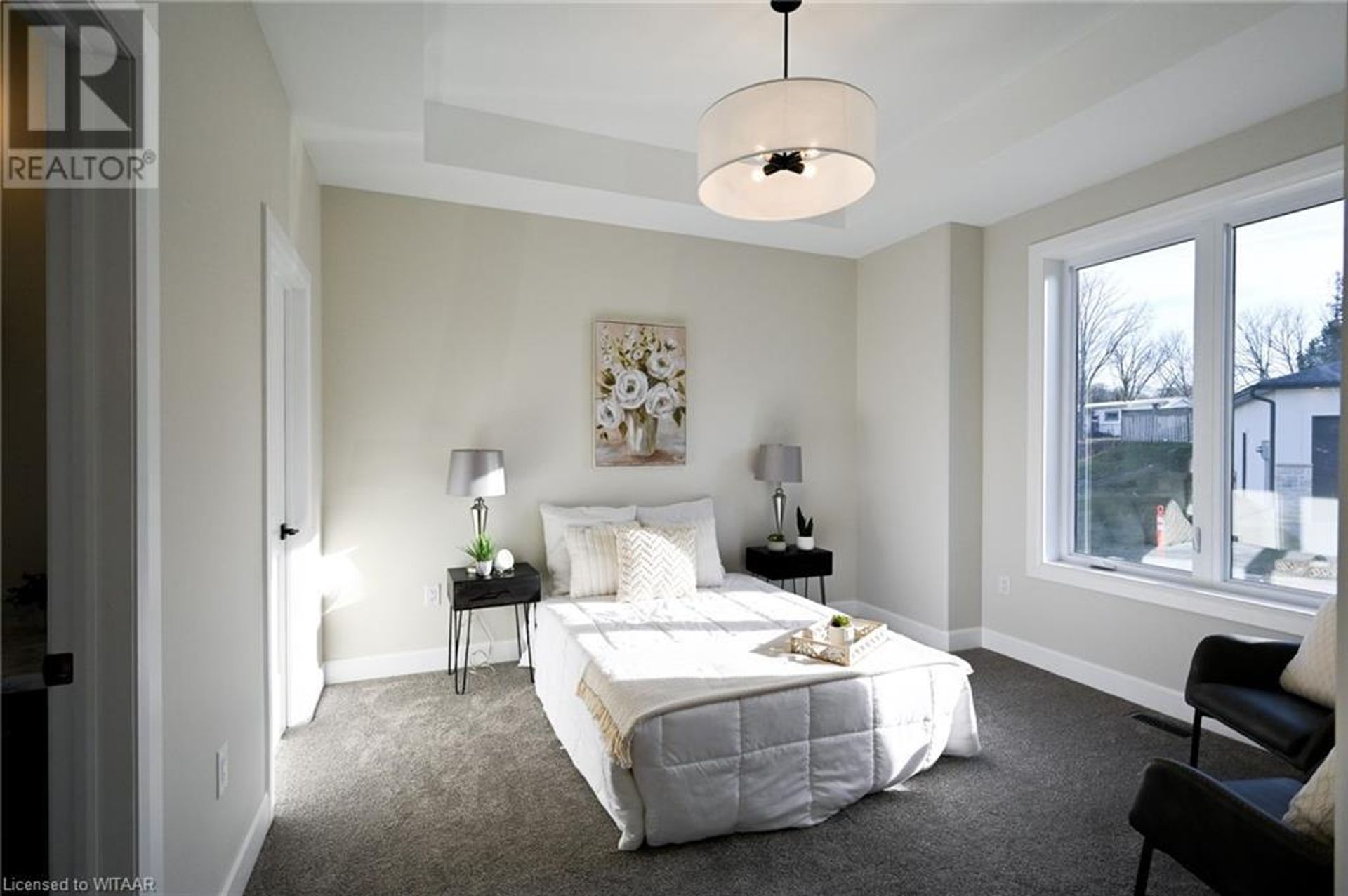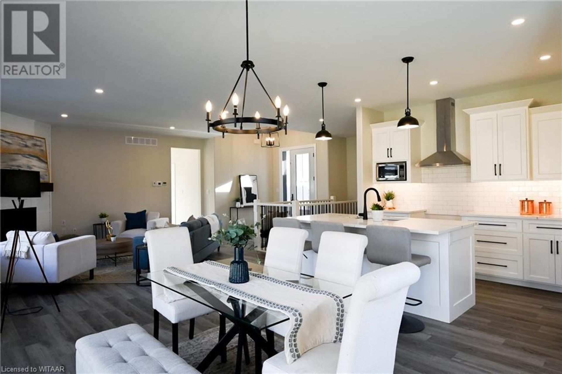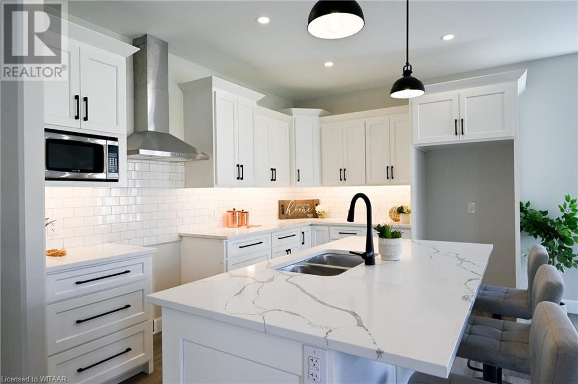 Welcome to modern, quiet living located at the Mill Pond Estates in Tillsonburg. This eye catching 2,808sq ft home backs onto a serene pond. The aesthetically appealing exterior features double car garage with a separate entrance, white stucco with black accents and wooden beams. Walking in through the front foyer with tray ceilings, you are greeted with a modern, open concept design and contemporary finishes that shows very well. The living room features a corner unit gas fireplace that flows perfectly into the dining area with lots of room to entertain, leading to the back covered porch, overlooking the pond. The custom built wood kitchen has plenty of cabinetry, eye catching backsplash and granite counter tops. The main floor offers a large primary bedroom with a walk-in closet and 3 piece ensuite with walk-in shower, finished in cultured marble. Additional bedroom, full 4 piece bathroom, closet laundry, good sized mudroom area with large coat closet complete the main floor. The fully finished basement boasts a large rec room with sliding patio doors leading to a concrete covered patio overlooking the pond. Two good sized bedrooms, 4 piece bathroom and large utility/storage room complete the basement. This move in ready home, is awaiting your personal touches! (id:14735)