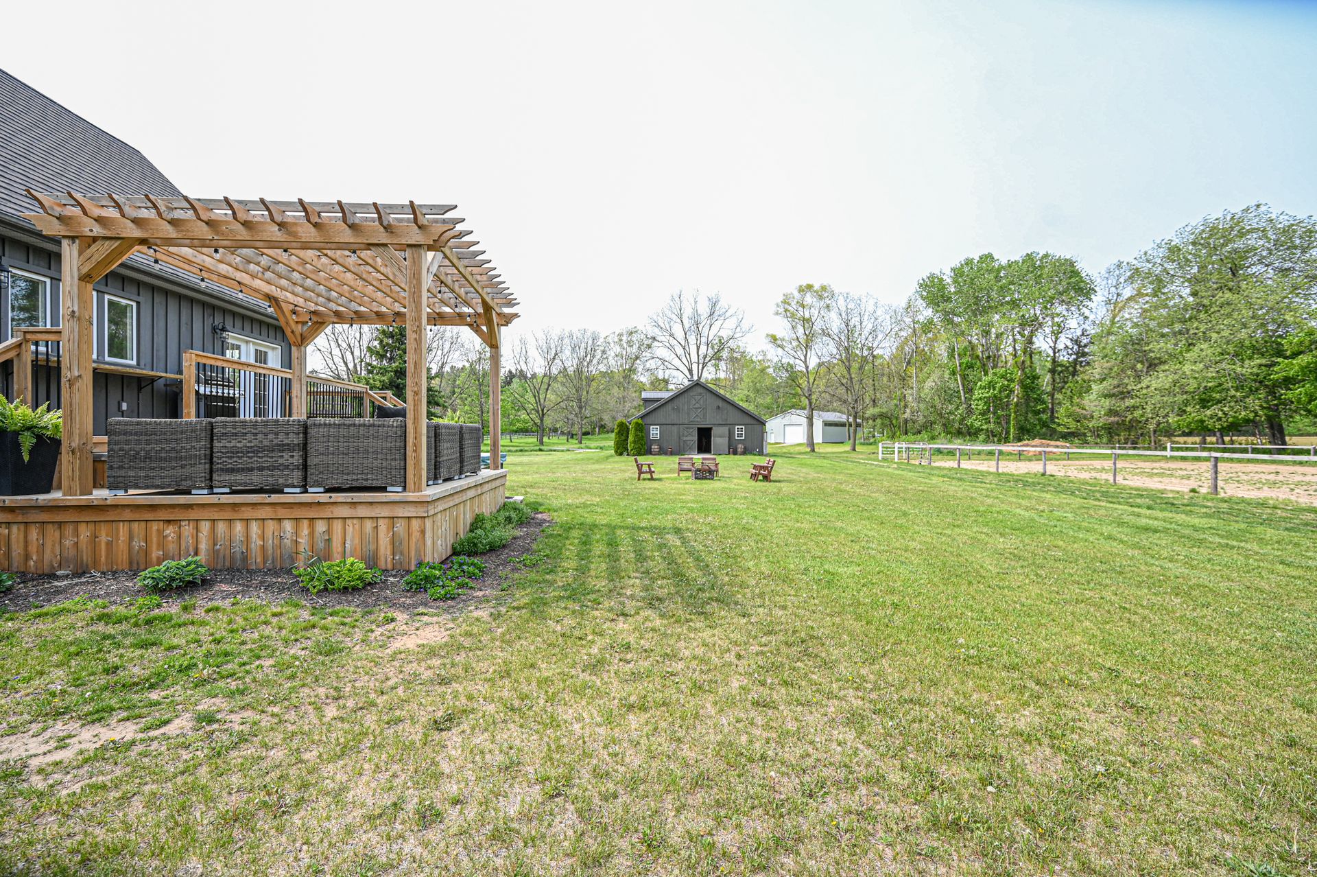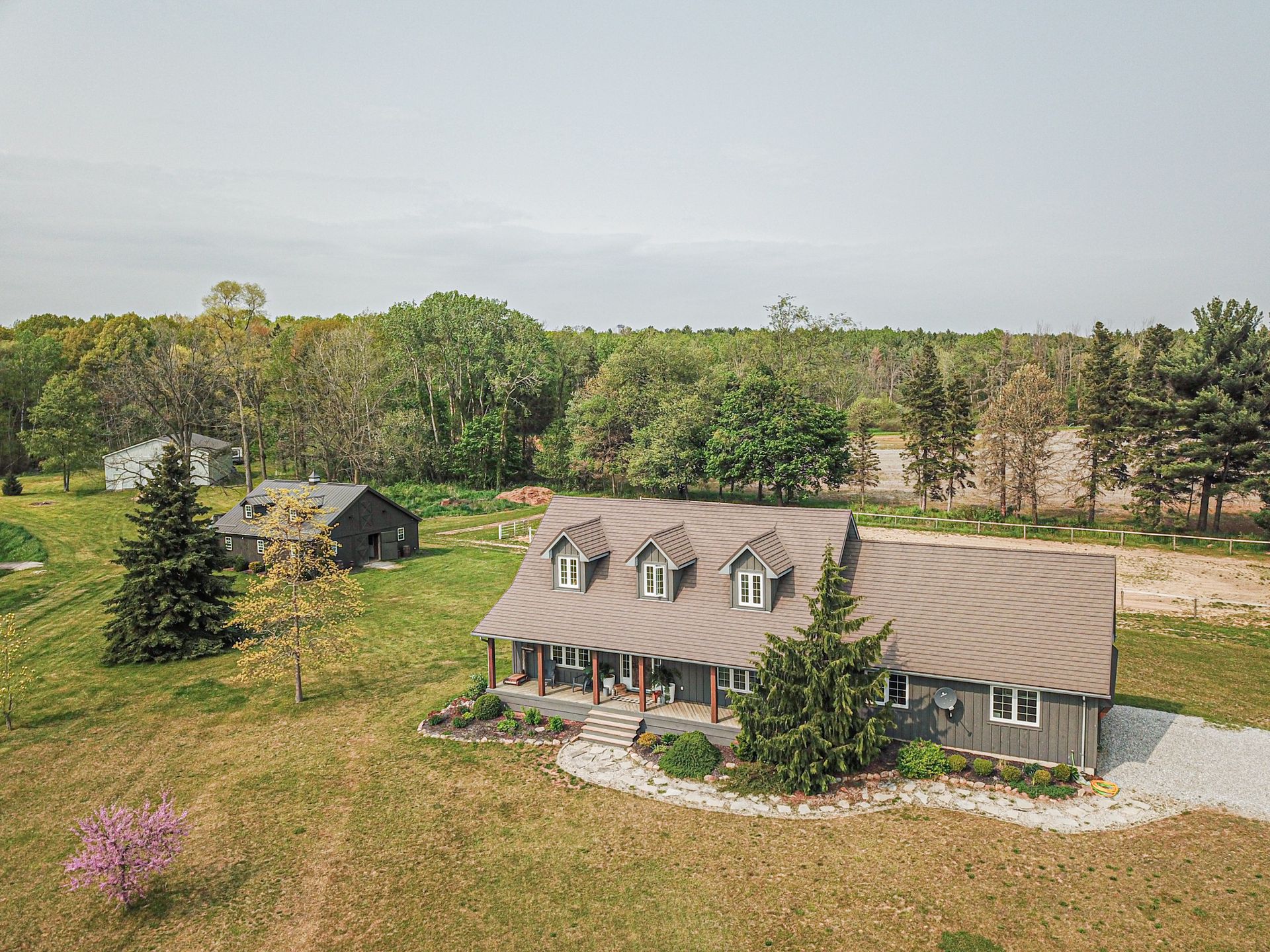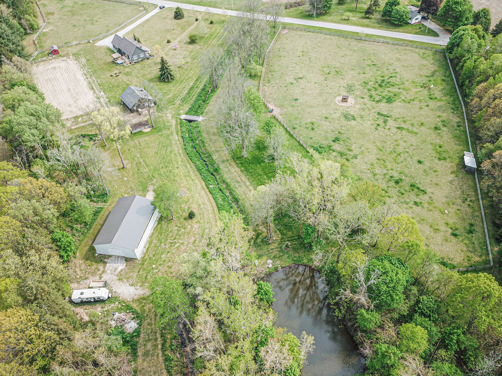 Welcome to quiet, country living! This pristine property on nearly 20 acres is located in the heart of nature on a quiet paved road just 10 minutes south of Tillsonburg in beautiful Norfolk County. With 15 acres of private Carolinian forest perfect hiking/riding and walking trails to the pond, this property is the perfect hobby farm for your family. The cleared area with buildings of the property is approximately 5 acres and offers 2 large fenced in areas complete with oak fencing. Custom Built Amish 4 stall horse barn with heated tack room, upstairs hay storage and full wash-bay. A shop 40\'x60\' with a roll up door and electricity near the pond with lots of natural lighting. Enjoy the scenic views of the pasture and surrounding farmland from your back deck with pergola or the bubbling hot tub. Custom built 4 bedroom, 3 bath Classic Cape Cod home with new board and batten exterior and covered front porch. Completely renovated main floor with engineered hardwood flooring, features a new galley kitchen with ample of storage and granite countertops, a 5 piece bath, laundry room with easy access to the garage. Enjoy the scenic views from your dining area with backyard patio access. The living room area hosts a nice space, great for entertaining or game nights with the family. Use your imagination with a large front facing main floor office space, playroom or bedroom. Upstairs you will find the principal bedroom, ensuite and walk in closet and a private sitting area to wind down from a busy day. Downstairs are two large bedrooms, bathroom and large rec room. This well kept property, is truly a must see! (id:14735)