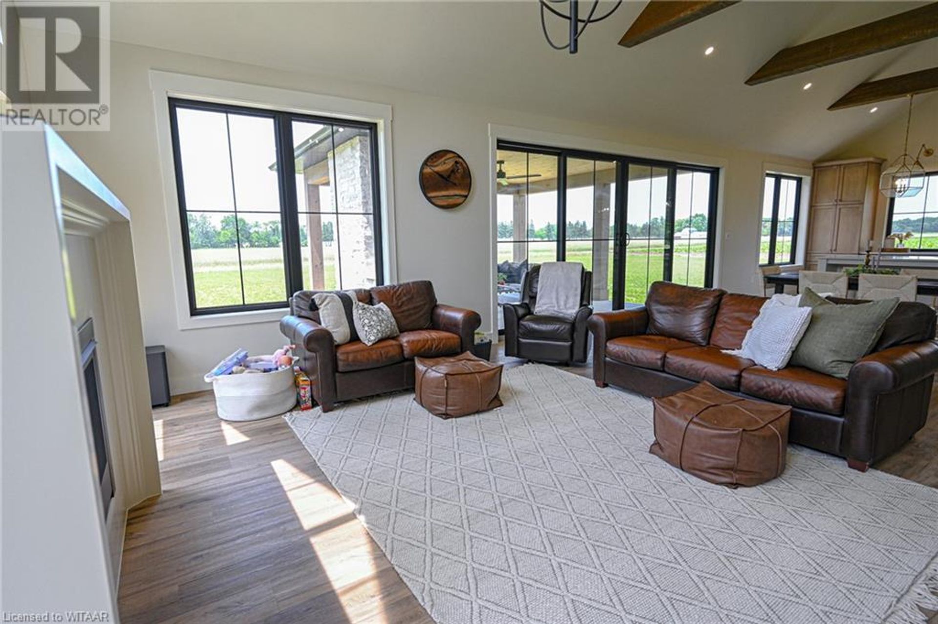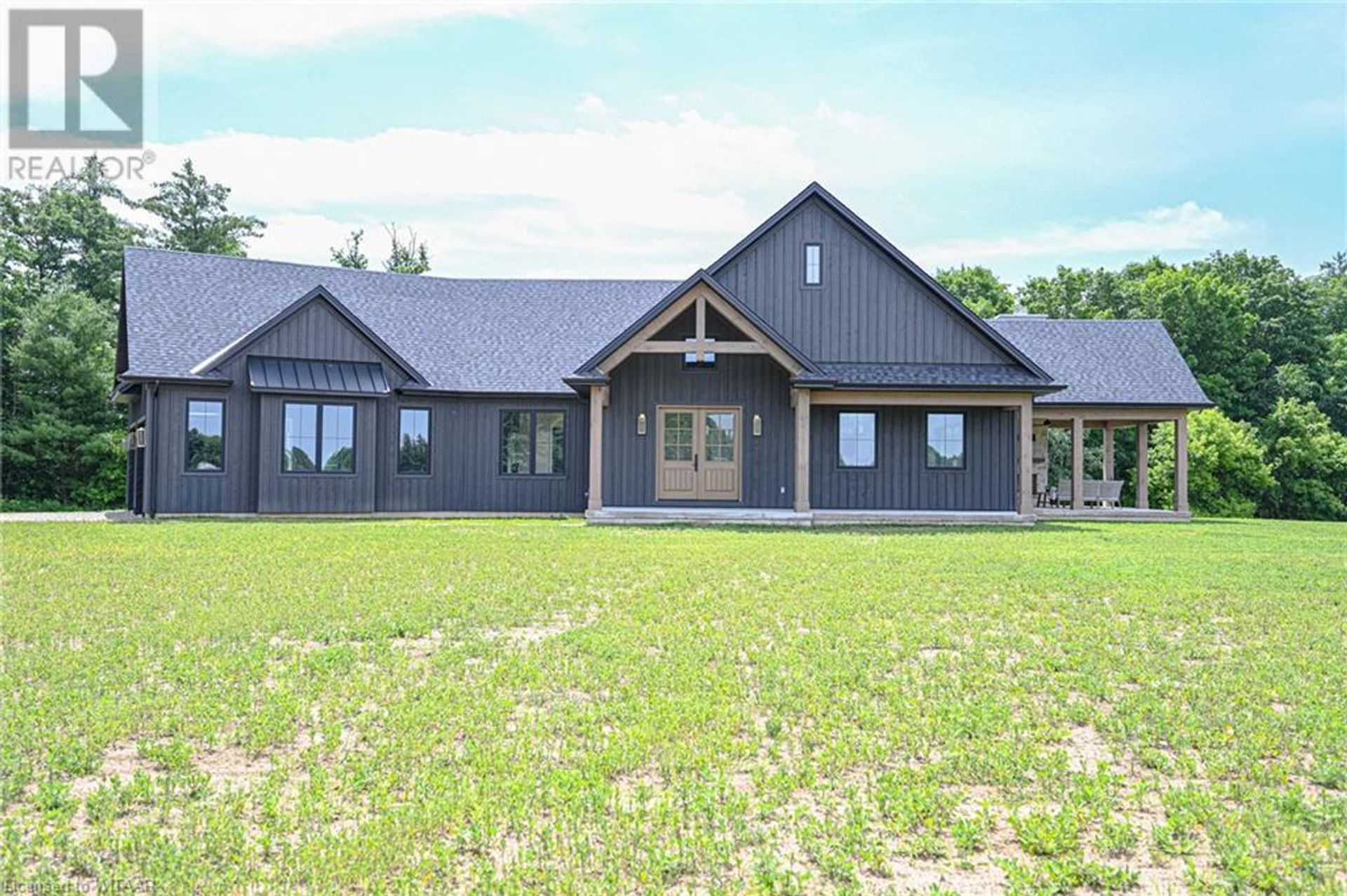 Are you looking for a executive home on 53 acres with 5 acres of tillable acreage, bush, pond, and a creek winding its way through and absolute privacy? This is certainly it. Located with southren exposure, this stunning home built by Everest Estate Homes is nestled far back from the road with a winding driveway and overlooking your own forests and pond. Beyond the incredible setting, the home boasts high ceilings with timber work, oversized garage, modern farm house colors and finishes, main floor primary bedroom with large ensuite, and lots of windows and large patio door to show case the incredible views all around the main living area. Upstairs is two more bedrooms, bathroom and playroom. With the walk out basement which is ready to drywall with a large rec room, bedroom, and bathroom, there is lots of sq.ft to expand. This truly is once in a lifetime home and farm to own and have your own quiet getaway. (id:14735)