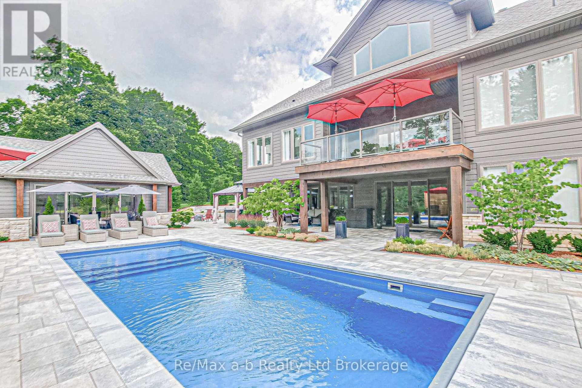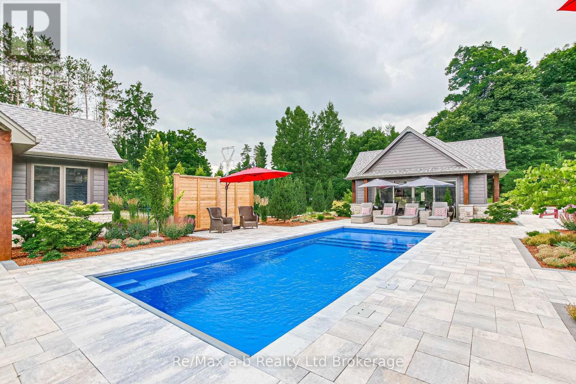 One-of-a-kind residence, perfectly located on a fenced cul-de-sac acre in the Ottercreek Estates. This custom home has 3,212 sq. ft. of living area with a 1,922 sq. ft. walk-out to a stunning back yard with an inground fiberglass Pinnacle Pool, automatic safety cover, extra shed (12x24) for pool equipment, loft storage, lawn equipment storage plus room for your golf cart! Stunning pool house (20x24) with stone fireplace, wood ceilings, wet bar, and so much more. The stone deck includes an outdoor fire pit and hot tub with gazebo... all surrounded by great stone walls & pine trees. In the home with the massive great room with 26\' vaulted ceilings, stone gas fire place, hardwood floors & 2 storey window wall over looking Otter Creek Golf Course. Stunning gourmet kitchen with 10\' ceilings, hidden pantry, Miele appliances & quartz counter tops. Two stage cove ceilings throughout. Private dining room/study with French doors & transom. Master suite with private deck access with walk-in closet & 6pc. Ensuite. Twin showers, heated floors, no-touch flush toilet & custom closet. The lower level has a bright & open rec/games room with new hardwood floors & two additional bedrooms. Upper loft is complete with a bedroom and bathroom for a total of 4 bedrooms! This property also has a standby generator, and is fully landscaped with carpet like lawn, inground sprinklers & armor stone retaining walls. Oversize dual two car garages with 10\' doors, basement entrance & in-floor heat for detached garage. (1,965 sq. ft.). Pictures don\'t tell the story here it needs to be seen! The location at the end o f the cul-de-sac with total privacy in the back yard is impossible to find, but here it all is! (id:14735)