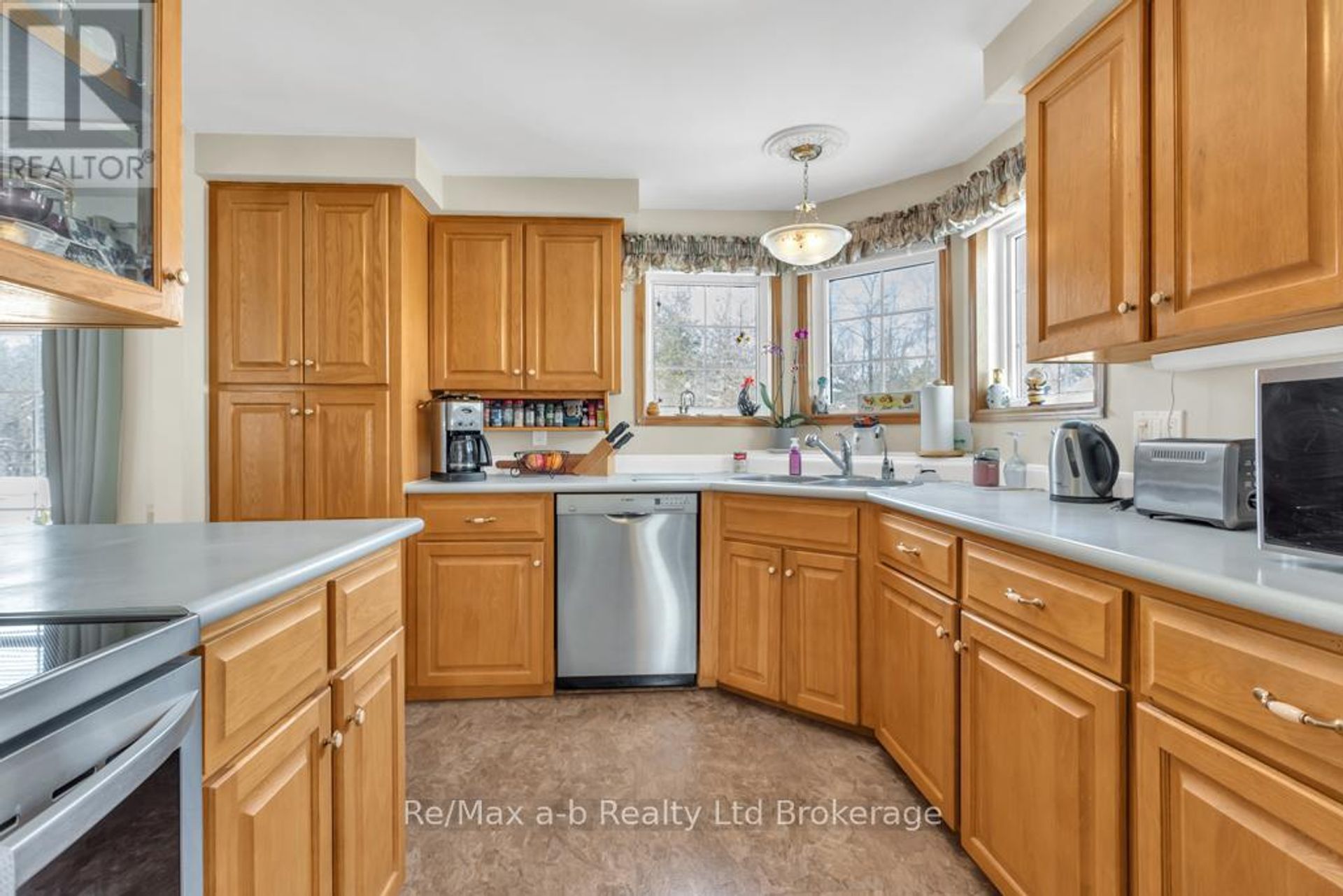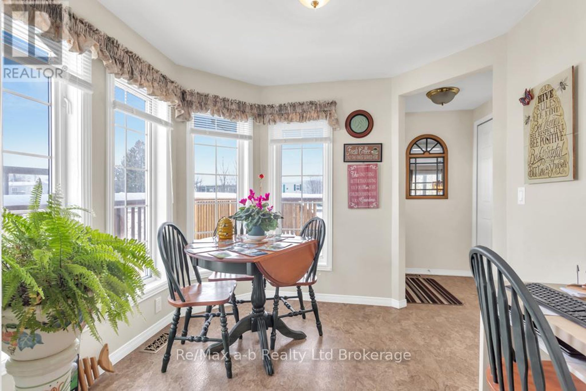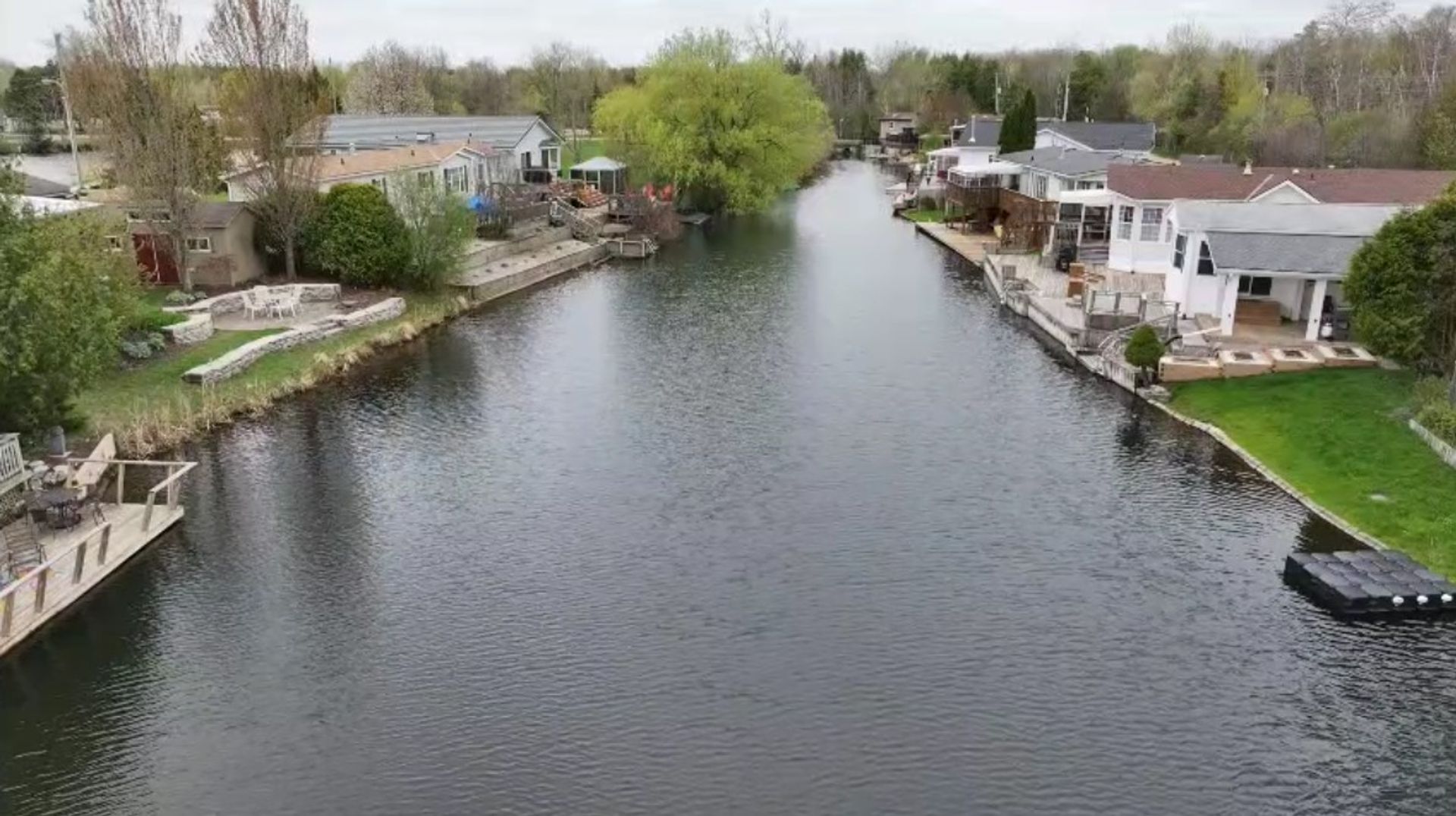 This home is in the lovely community of Mini Lakes just north of the 401 and Highway 6. Situated right on the water with a circular driveway that can hold 4 vehicles comfortably, mature landscaping, and all main floor living, this is a home to look at. The rear deck faces south and over the water where you can fish, canoe, and ties into the main lake. The upper deck is partially covered and enclosed, and the lower deck wide open to let your feet dangle in the water. The shed has hydro and under the home is a crawl space for storage options. The main floor has lots of room with two bedrooms and an patio door going from the master bedroom to the deck and ensuite. Off of the bright and cheery kitchen is a lovely breakfast nook with a door going to the upper deck. This is a hard to find double wide lot with multiple vehicle parking! (id:14735)