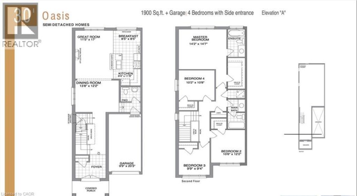 NEW PRE-CONSTRUCTION 1900 Sq Ft SEMI-DETACHED HOME ON A Good Size 30\' FT WIDE X 112 FT DEEP LOT with 1 Car Garage + Long Driveway = 3 Car Parkings(NEWLY BUILT HOME FROM A QUALITY BUILDER: ASTRO HOMES) A Simply Gorgeous Home w/GRAND DOUBLE DOOR Entry. A Good Size Mater Bedroom with Ensuite & Walk-In Closet. MOST CONVENIENT 2ND FLOOR LAUNDRY**(LOADED with Upgrades) 12 x 24 Tiles on main & 2nd, Modern Luxury Vinyl Plank Flooring on Main & Upper with Matching Natural Oak Stairs, California Ceilings (9ft on Main Floor), A Good Size Kitchen with Centre Island Quartz Counters, Extended Upper Cabinets, Superior Baseboards & Casings. **EXTRAS** Brand New Home in BEAUTIFUL Mature(King ST)Neighbourhood w/Easy Access to Hwy 401. NICE UPGRADES INCLUDED WITH THIS PRE CON HOME DIRECTLY FROM BUILDER. Separate Side Entrance for Basement Included(7 yr Tarion Warranty & Choice of Interiors) (id:14735)