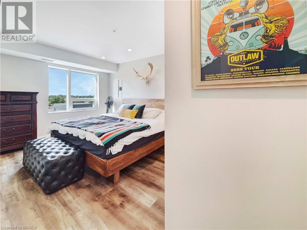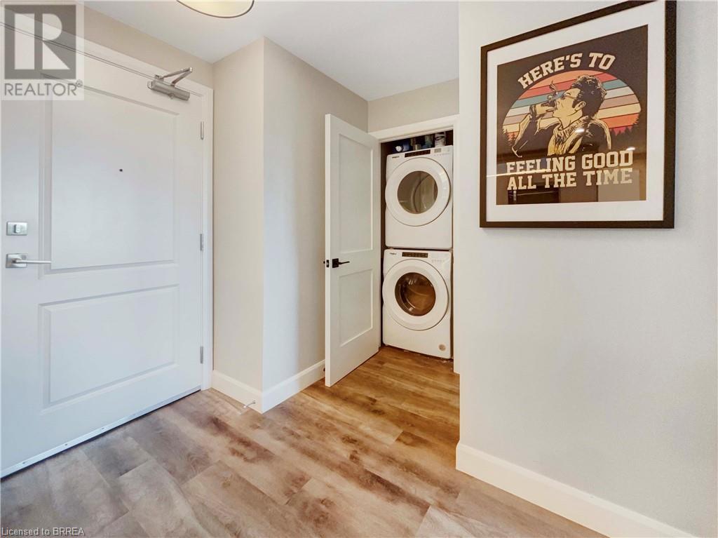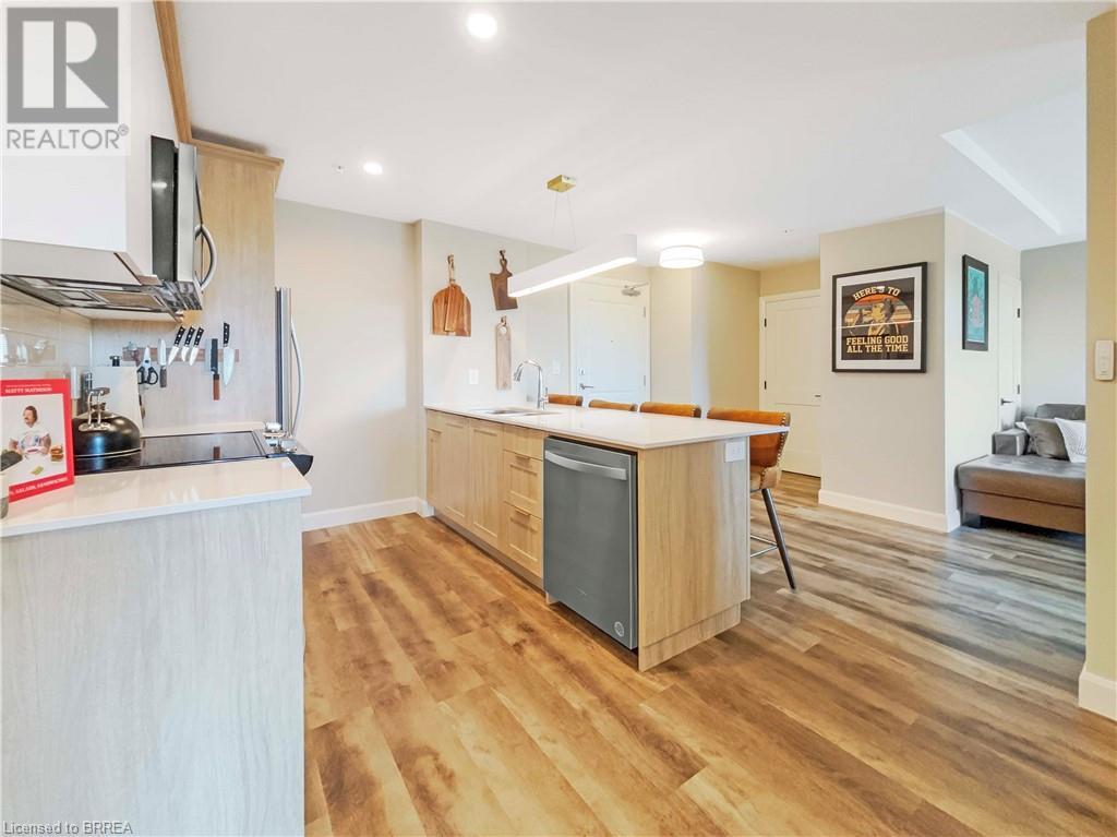 Welcome to this bright and modern condo in Brantford’s sought-after north end, offering easy highway access and a vibrant community feel. The building features incredible amenities including a rooftop terrace, fitness centre, BBQ area, cozy library, and even a hidden speakeasy. Inside, you’ll find a beautifully designed kitchen with a large peninsula, quartz countertops, stainless steel appliances, and stylish lighting. The suite is filled with natural light and offers in-suite laundry, two spacious bedrooms, a generous 5-piece ensuite with double sinks, and a second full bathroom. Step out onto your private balcony and take in beautiful sunset views on warm summer evenings. (id:14735)