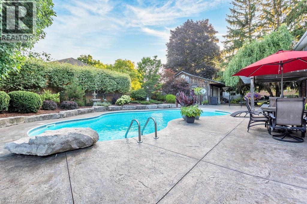 Nestled in the heart of Innerkip, this 4 bedroom family home is a true gem that blends modern comfort with small-town charm.  From the moment you arrive, the curb appeal shines - mature landscaping with a brick pathway leads you to the front verandah complete with sitting area. The landscaping continues in the rear yard with a stamped concrete patio, pergola, ambient lighting and 20\' x 40\' salt water pool  and creates a back yard oasis.  Perfect for summer barbecues and relaxing evenings under the stars. A generous side yard adds even more to the outdoor space - ideal for kids to play or gardening.  The detached 24\'x 24\' workshop is a rare find - gas heated and powered for your tools and is a dream haven for hobbyists or collectors. Step inside to discover an updated kitchen, ample cabinetry and newer stainless steel appliances - a delight for any home chef.  Gleaming Japanese hardwood flooring (2016) flows throughout the main living areas, lending warmth and character with its rich tones.  The living and dining spaces are bright and inviting, ideal for everyday family living and entertaining guests.  A finished basement with convenient walk-down access from the attached double garage offers a versatile area for movie nights, a playroom, gym or potential in-law suite . This home has been meticulously maintained with numerous upgrades, including a new furnace (2023), added insulation (2021) for energy efficiency, water softener, on demand water heater and more. Situated on a quiet street in a family-friendly neighbourhood, you\'ll enjoy the small town tranquility of Innerkip while being just minutes from Woodstock and Highway 401/403 for an easy commute.  Spend weekends at nearby parks, trails and the golf course or simply in your own backyard. With its move in ready condition, modern amenities and ample space inside and out, this property offers everything you need to start making family memories. Your Innerkip dream home awaits - make it yours! (id:14735)