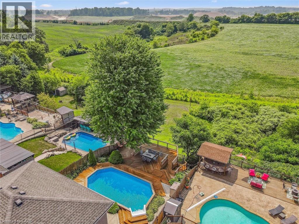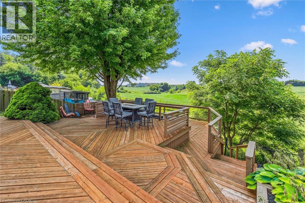 A Picturesque, stunning property with no rear neighbors and 2995 sq feet of finished living space. Welcome to 114 Delavan Dr in the West Galt portion of Cambridge. You are welcomed by an interlocking driveway, double garage and a lovely covered front porch. Inside the home presents a good sized living and dining room with hardwood flooring, a bright white kitchen with stainless steel appliances, large island and access to side deck, perfect for a BBQ. The upper portion of the home features three bedrooms and a 4 piece bathroom with updated countertop. The primary offers a walk in closet and 4 piece ensuite bath, again with new countertops. The lowest level is complete with an addition 4th bedroom, 4 piece cheater ensuite bathroom complete with new vanity, massive living room with high ceilings and a bonus room that can be used as a gym, office, games room and more. The most attractive feature in this area of the home is the walk out to the extraordinary backyard oasis. Here you have a covered porch, on ground 15 x 29 pool, aggregate concrete, and multi-level deck providing ample entertaining space. Enjoy the sunsets over the trees while hosting family and friends on a warm summers night, or cool fall evening. This beautiful family home in a highly desirable location awaits its next owner. Other updates in the home include Furnace & Heat Pump (2023), Insulated Garage Doors (2022), Bathroom Countertops (2025), Front Porch Railings (2020), Pool Pump (2017) and Pool Heater (2016). Book your showing today and don\'t miss out on this great opportunity. (id:14735)