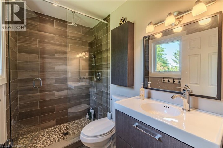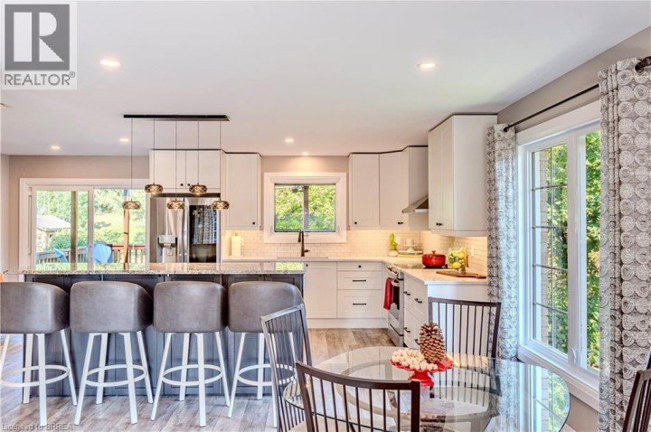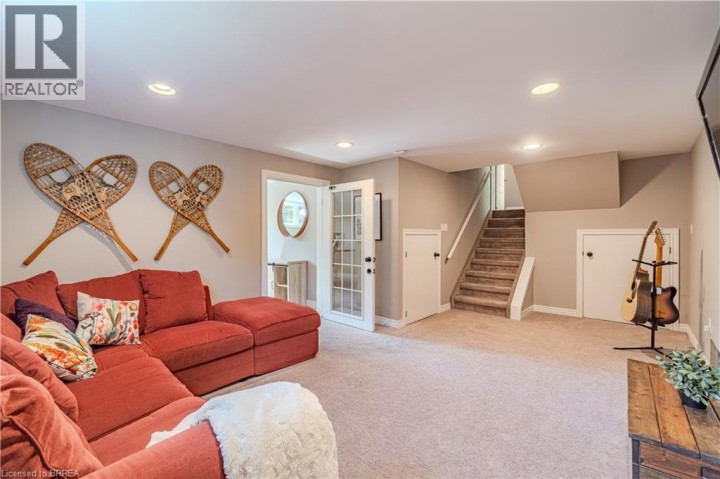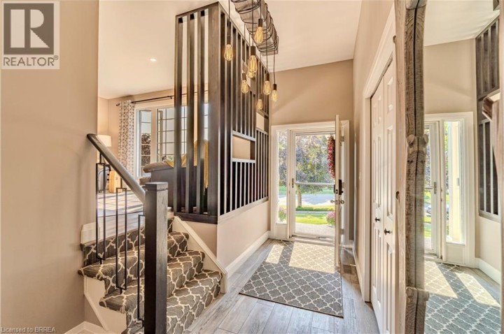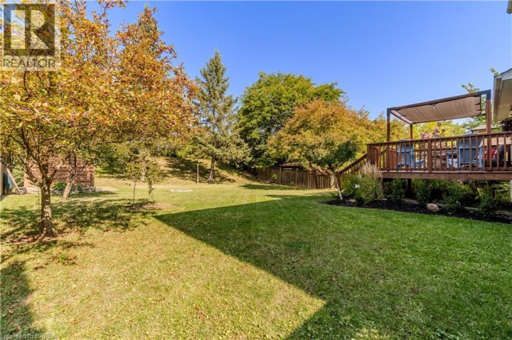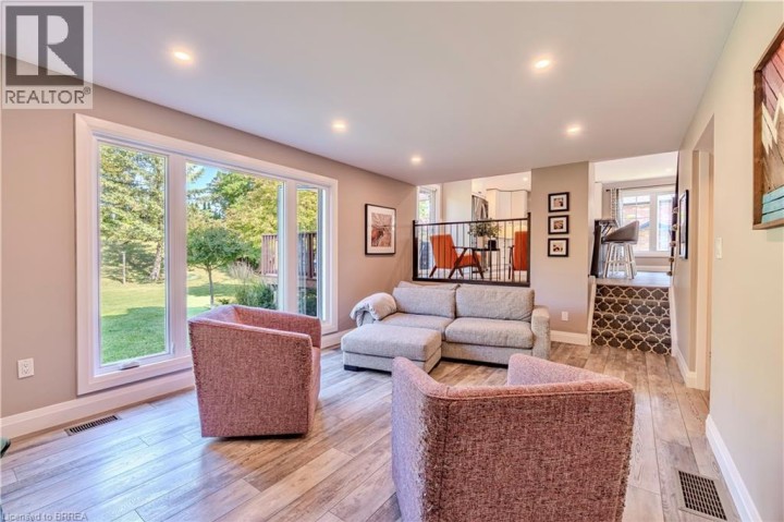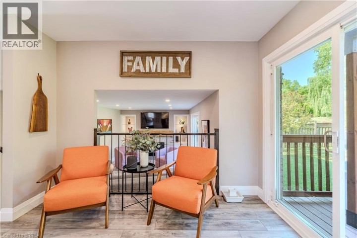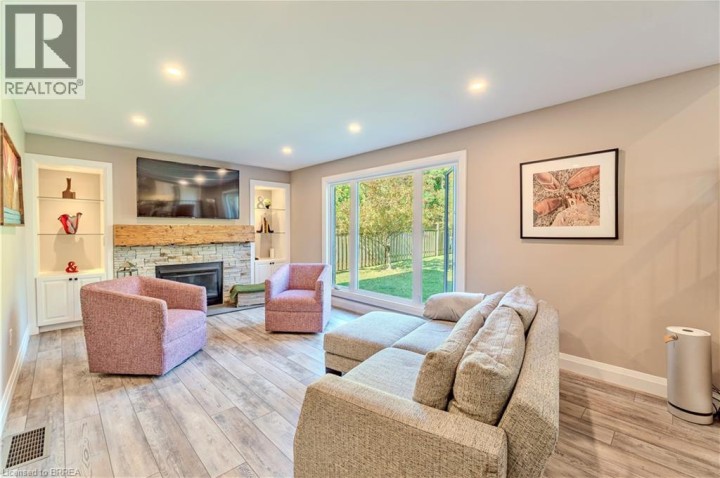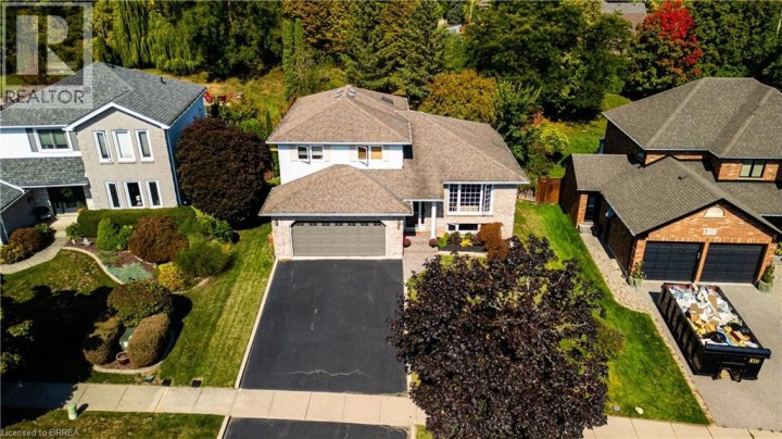Located in one of Brantford’s most prestigious neighbourhoods, this stunning multi-level home is anything but cookie cutter. Thoughtfully designed for a growing family, it offers 4 bedrooms, 3 bathrooms, and spacious living across four finished levels. Full of architectural charm, sun-drenched rooms, and a peaceful, private setting, it truly stands out. Make an entrance through the impressive foyer, featuring striking architectural details and beautiful lighting. From here, enjoy a stunning view of the renovated kitchen and living area just one level up highlighting thoughtful design elements and creating an open, connected feel throughout the home.This level also features a cozy family room with fireplace, built-in bookshelves, large picture window, 2-piece bath, and laundry. Upstairs, the custom kitchen shines with modern finishes, beautiful appliances, and a touchless faucet. It offers maximum storage with cabinetry on both sides of the island and a separate bank of cabinets—ideal for a coffee or drink station. An eat-in dining space and sliding doors lead to the large backyard deck. The adjacent living room is bright and airy, thanks to expansive morning-facing windows.The upper level includes three spacious bedrooms, a renovated main bath, and a large primary suite with a private 3-piece ensuite featuring luxury heated floors. The fully finished basement provides even more space, including a versatile rec room and fourth bedroom—ideal for guests, teens, or a home office. Oversized windows keep the lower level bright and welcoming. Outside, enjoy a pool-sized, fully fenced backyard with mature trees, no rear neighbours, and a large deck perfect for entertaining. Additional features include central vacuum and modern mechanicals. Families will love the location—walking distance to Agnes Hodge, St. Gabriel, and Assumption schools & amenities. Tucked away on a quiet court, 4 MacBride Court offers the space, function, and character your family has been looking for. (id:14735)