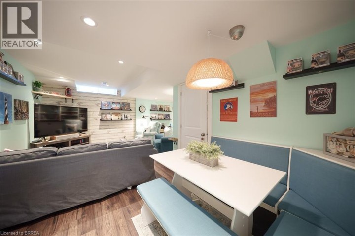 Welcome home to 100 Bisset Avenue in Brantford. This freehold 2-storey end-unit townhouse offers 1,296 sq ft of primary living space with 3 bedrooms, 2.5 bathrooms, a professionally finished basement, single-car garage and a fully fenced and gated backyard. Lovingly maintained by its original owners, this home is set in the sought-after, family-friendly Empire South community of vibrant West Brantford. The main level begins with a welcoming tiled foyer complete with built-in shelving and a convenient 2-piece bathroom. The carpet-free design continues with laminate flooring throughout the open-concept layout, featuring a spacious living room and an eat-in kitchen. The kitchen offers two-tone cabinetry, extended counters, updated fixtures, and stainless steel appliances, including a newer fridge and stove (2023). From here, sliding doors open to the backyard, and there is also direct inside access to the garage for added convenience. Upstairs are three bedrooms, including a primary suite with a walk-in closet and a 4-piece ensuite bathroom. A second 4-piece bathroom and a linen closet complete the upper level. The professionally finished basement (2020) expands the living space with a large recreation room featuring recessed lighting, built-in shelving and cabinetry. A finished laundry room with additional cabinetry adds function, while a utility room with built-in shelving provides organized storage. The level is complete with a cold room/cellar. The fully fenced backyard includes a raised wooden deck, a gazebo, and a covered BBQ gazebo for cooking in any weather. A large shed with a serving-style opening makes it ideal for storage or entertaining, while a gated throughway offers convenient access in and out of the yard. Just steps from excellent schools, walking and biking trails, public transit, and a variety of nearby shopping and dining options, this home combines everyday convenience with a family-friendly setting. (id:14735)