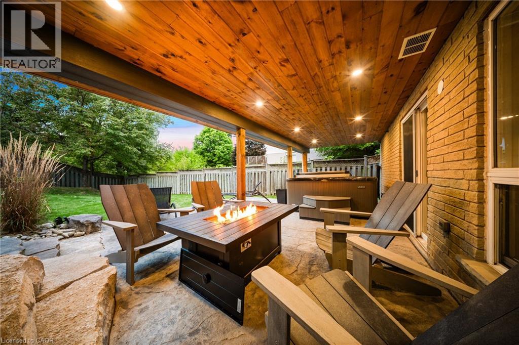 This turnkey family home in Hespeler is packed with thoughtful upgrades, stylish finishes, and functionality from top to bottom. Inside, this 3+1 bedroom, 3.5-bathroom home offers a fully finished walk-out basement with a full bathroom and an additional bedroom — perfect for guests, teens, or in-law potential. The kitchen has been refreshed with sleek, contemporary updates (2024), while the family room is warmed by a stunning stone accent fireplace that adds texture and charm (2022). Upstairs, the bedroom level features wide plank engineered hardwood flooring throughout (2021), adding warmth and sophistication. Throughout the home, custom Hinkley lighting creates a designer feel, paired with custom shutters and window coverings for a polished finish. Step outside to a backyard built for relaxing and entertaining. A waterproof composite deck spans the back of the home, featuring glass railings (2021), integrated lighting, and a full-length powered awning (2021), so you can enjoy the space in any weather. The fully fenced yard includes a private hot tub and low-maintenance landscaping, all backing onto lush greenspace with no rear neighbours—offering privacy, tranquility, and an unbeatable view. And when it comes to location, this home delivers. You\'re just minutes from vibrant Hespeler Village, with local gems like the Hespeler Library, Fashion History Museum, Heritage Centre, and a range of great dining options. The Mill Pond Trail is close by for nature lovers, while nearby schools and parks make it perfect for families. Plus, Highway 401 is just minutes away, offering unbeatable convenience. (id:14735)