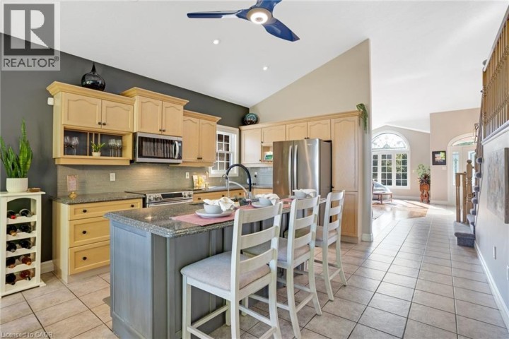 This 4-bedroom, 3-bathroom home shows true pride of ownership. The main floor features vaulted ceilings throughout, with an open-concept living & dining room, & an eat-in kitchen complete with a large island, quartz countertops, & a sliding door to the backyard. Upstairs, the spacious primary bedroom includes double closets & a 4-piece ensuite with a soaker tub & shower. A 2nd bedroom with a walk-in closet, a main hall 4-piece bathroom, & a small office nook complete this level. The lower level offers a large family room with a gas fireplace, big windows, and real California shutters, a 3rd bedroom with a walk-in closet, & a 3-piece bathroom. The basement is fully finished with a rec room with built-in cabinets, a large office that could serve as a 4th bedroom, & a laundry room with a sink & plenty of storage. Outside, the patio is surrounded by beautifully maintained gardens, along with a shed & a partially fenced yard. A full irrigation system front & back helps keep the garden & yard maintenance to a minimum. The Mayfair neighbourhood is one of Brantford’s most desirable areas, known for its quiet, family-friendly streets, nearby parks, & excellent schools. The home also offers convenient access to shopping, restaurants, & recreational amenities, with Highway 24 & the 403 just minutes away for an easy commute. (id:14735)