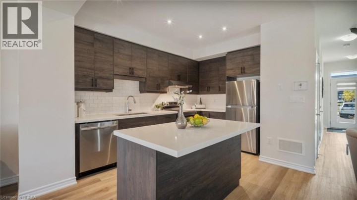 Welcome to 461 Blackburn Drive Unit #18, where modern comfort meets elegant design in the heart of beautiful Brantford City. This modern masterpiece end unit townhouse offers more than most detached homes do, with 3 spacious bedrooms, 3 bathrooms, and over 1,600 sq ft of thoughtfully designed living space. Step inside to a sun-soaked, open-concept main floor, where oversized windows, 9-ft ceilings, and rich laminate flooring create a bright, airy atmosphere. The gourmet kitchen is a true showstopper, featuring stainless steel appliances, quartz countertops, a large centre island, and stylish tile backsplash, perfect for casual meals or entertaining guests. Upstairs, retreat to the primary suite oasis with a walk-in closet and a private 3-piece ensuite. Two additional bedrooms offer flexibility for kids, guests, or a home office. Convenient upper-level laundry adds ease to everyday living. Enjoy outdoor space on your private backyard patio — ideal for morning coffee or evening relaxation. With an attached garage + driveway, parking for two is a breeze. Set in a quiet, family-friendly neighbourhood, you’re minutes from parks, schools, shopping, and all the conveniences of West Brant. This is low-maintenance living without compromise.. the perfect place to call HOME. Treat yourself to a new set of keys this fall, and fall in LOVE with where you live. (id:14735)