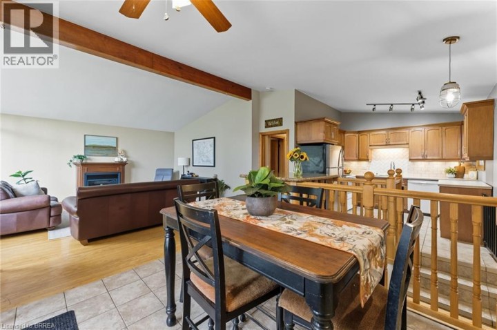 Welcome to 31 Buckingham St., Brantford—nestled in the sought-after, mature Greenbrier community, close to schools, parks, highway access, and all major amenities. This distinctive brick bungalow offers cathedral ceilings throughout the main level, creating an airy and inviting atmosphere. Step inside to an open-concept layout featuring a bright dining area, spacious living room with a large picture window that floods the space with natural light, and a cozy gas fireplace—perfect for chilly winter evenings. The functional kitchen flows seamlessly into the main living areas, ideal for both everyday living and entertaining. Two generously sized bedrooms and a 4-piece bathroom complete the main floor. Enjoy convenient inside access from the garage, leading to a private patio and fully fenced backyard retreat. The fully finished basement adds incredible value with a large family room, two versatile bonus rooms, a 3-piece bathroom, and a spacious laundry room offering plenty of storage. Updates include fresh paint (2021), luxury vinyl plank flooring, trim, baseboards, and window coverings in the basement (2022), refinished exterior wood siding (2022), new water softener (rental 2023), new hot water tank (rental 2025), and a new roof (2023). All this on a great street in the wonderful north end neighbourhood, the perfect place to call home. (id:14735)