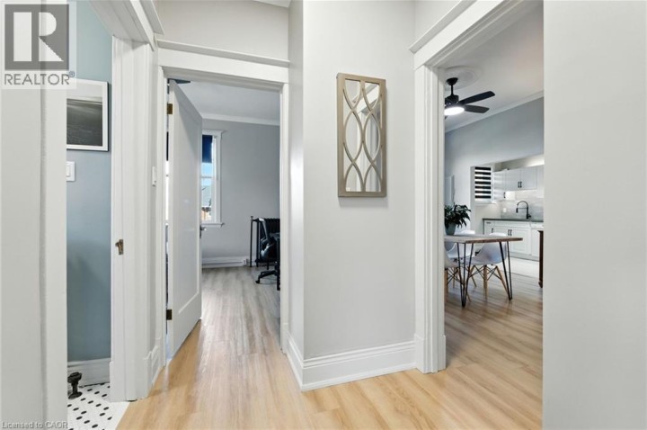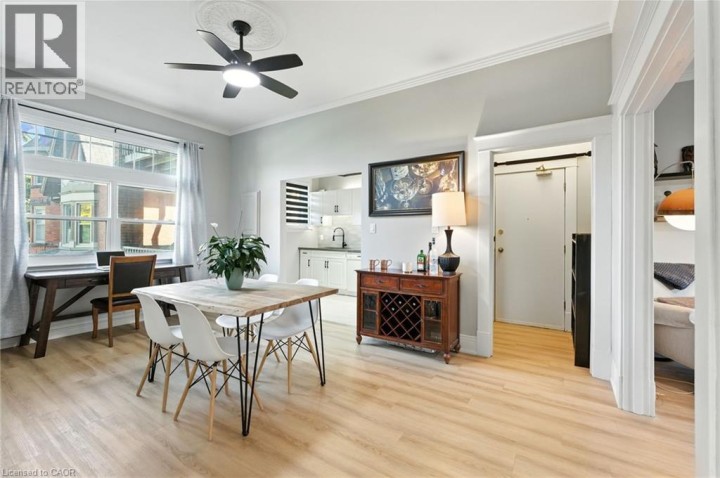 Welcome to 54 Dufferin Avenue, where timeless character meets modern style. This newly updated condo offers a rare opportunity to live in one of Brantford’s most sought-after and historic neighbourhoods, blending the beauty of early 1900s architecture with today’s conveniences. Inside, you’ll find nearly 1,000 square feet of thoughtfully designed living space. High ceilings, oversized windows and classic details like crown moulding and original hardware give the unit a sophisticated feel, while the updates make it completely move-in ready. The kitchen features quartz countertops, subway tile backsplash, valance lighting and plenty of prep space. The bathroom has been fully refreshed with a new vanity and timeless penny tile flooring that ties back to the home’s 1910 heritage. Durable vinyl flooring runs throughout for a clean, modern look. The spacious living room overlooks the beautifully landscaped courtyard — perfect for relaxing after work or hosting friends. Beyond your front door, you’ll love being steps away from parks, walking trails and nearby pickleball courts, as well as downtown shops, restaurants and schools. With easy access to Hwy 403 and public transit, this location makes it simple to balance work, play and everyday convenience. Offering heritage appeal, modern upgrades and a vibrant community setting, this condo is the ideal first step into homeownership in one of Brantford’s most desirable areas. Don’t be TOO LATE*! *REG TM. RSA. (id:14735)