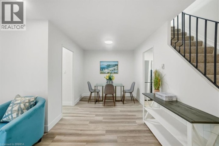 Step inside this fully renovated two-storey condo in 2025 and prepare to be impressed! Every detail has been updated from the fresh paint and new flooring to the sleek, modern finishes throughout. The open-concept main floor features a bright living and dining area that flows effortlessly into the stylish, updated kitchen perfect for entertaining or relaxing after a long day. A versatile main-floor bedroom offers the ideal space for a den, home office or a third bedroom, giving you flexibility to fit your lifestyle. Upstairs, two spacious bedrooms provide plenty of comfort and privacy. Located in Brantfords sought-after North End, you\'ll love being close to schools, parks, shopping, and easy Highway 403 access. Plus, enjoy peace of mind with all utilities included heat, hydro, and water and your own exclusive parking spot conveniently located near the rear door! This is effortless, move-in-ready living at its best! (id:14735)