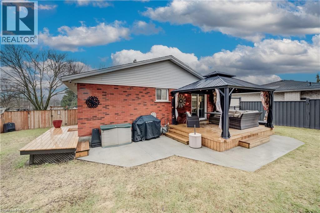 SOLID BRICK BUNGALOW WITH IN-LAW POTENTIAL, IN WEST GALT’S MOST COVETED POCKET. Thoughtfully updated over the years with over $81k in recent improvements, this entirely CARPET-FREE, CORNER LOT home is truly turn-key and move-in ready. Parking allows up to 7 vehicles including garage. Step inside to a seamless open-concept flow on the main level, featuring a spacious, sun-drenched kitchen, formal dining area, and a cozy living room anchored by massive windows that offer gorgeous views of the mature, tree-lined street. The primary retreat is a standout, complete with double closets, a modern ensuite with a walk-in shower, and a private walk-out to your low-maintenance backyard oasis. Two additional sizeable bedrooms, a full 4-piece bathroom, and a second backyard walk-out complete this well-appointed main floor. The lower level is beaming with potential for an in-law setup - featuring a 4th bright bedroom, an expansive rec room, a powder bath, and direct access to the garage via its own separate man door entrance. Located in the heart of West Galt, you are a 2-minute walk to the scenic Walter Bean Trail and 5 minutes from the 401, the historic Gaslight District, and more. Recent updates include: Full Bathroom Refresh (2026), all Windows, Fence & Deck (2023), Hardwood Floors (2019) (id:14735)