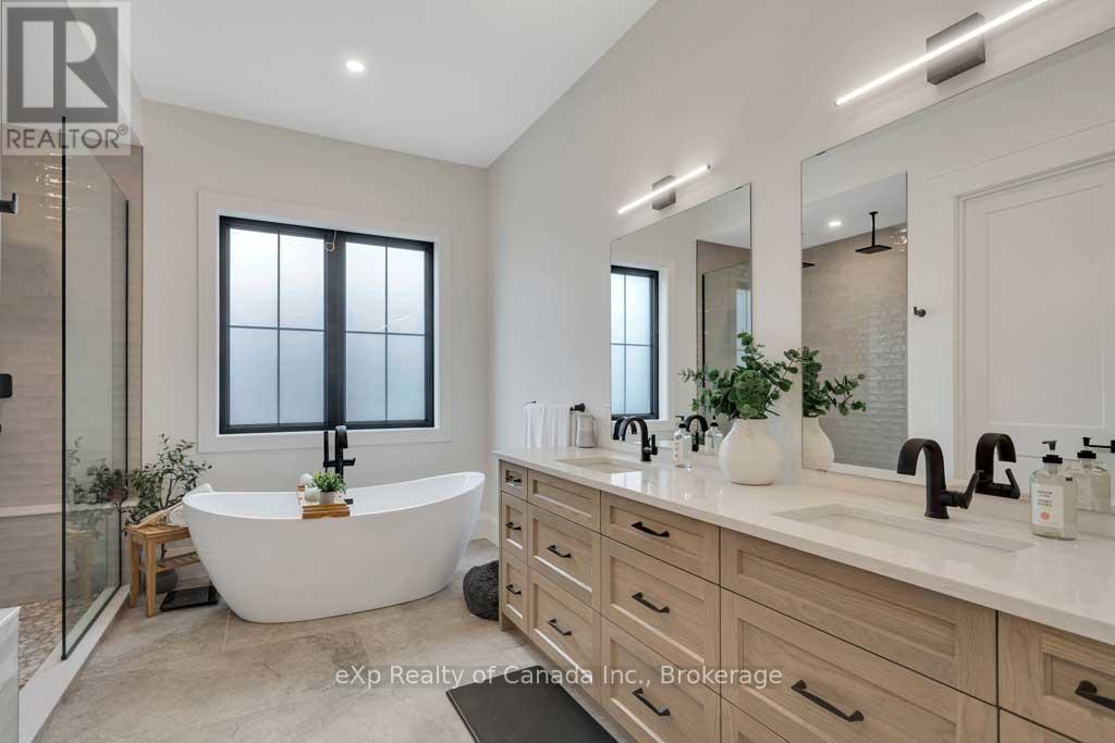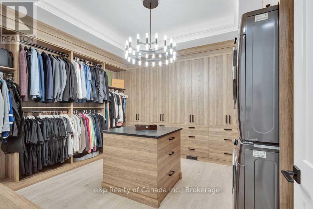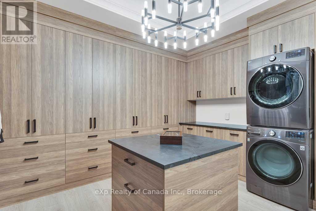 Embrace the warmth of home at 45 August Crescent in the charming village of Otterville. Nestled against a picturesque ravine, this distinguished residence boasting over 5,000 square feet of finished space stands as a peerless masterpiece. The journey begins with its enchanting curb appeal that sets the tone for the unparalleled allure that awaits within. Making your way through the front doors you are greeted with a spacious foyer and views to the backyard through the living room, which features a 20\' coffered ceiling and stunning stone fireplace. The kitchen is a chef\'s dream highlighted by an oversized island, custom metal range hood, built-in fridge/freezer, 4 under-counter fridge drawers, 48\" gas range, 2 dishwashers, and a spacious butler\'s pantry. Further enhancing the main floor is an informal dining area, a formal dining room (which is currently being used as a family room), an office, a home gym, and the private primary suite which sets the standard for excellence with a large walk-in closet with island and laundry, and a luxurious ensuite with dual shower and soaker tub. Making your way upstairs you will find 4 more oversized bedrooms, two full bathrooms and a second full laundry room. The back yard has stunning views of the ravine from the large covered porch. Over 3,000 square feet of unfinished space in the basement is awaiting your personal touch. The garage also features over 1,500 square feet of heated/cooled space with plenty of room for both vehicles and toys. If a degree of sophistication is what you enjoy then this is the home for you. (id:14735)